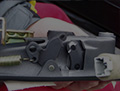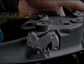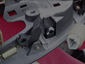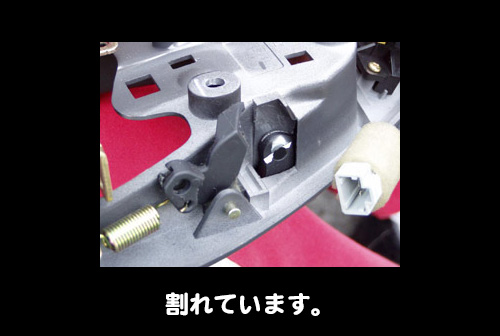 このアルミ製部品は、純正品はプラスチックで破壊しやすく、必ずといっていいほど破損します。通常壊れるとアッセンブリーの交換になるので、とても高価です。純正品で片側定価24.500円、TYPE-R,Sでは32.600円もします。これは、この上記写真の部分がプラスチックで出来ているためASSY交換となるためです。この壊れやすい部分をアルミでつくり直しました。アルミブロックをMC旋盤にて削り出しにて製作しており、高品質に仕上がっております。